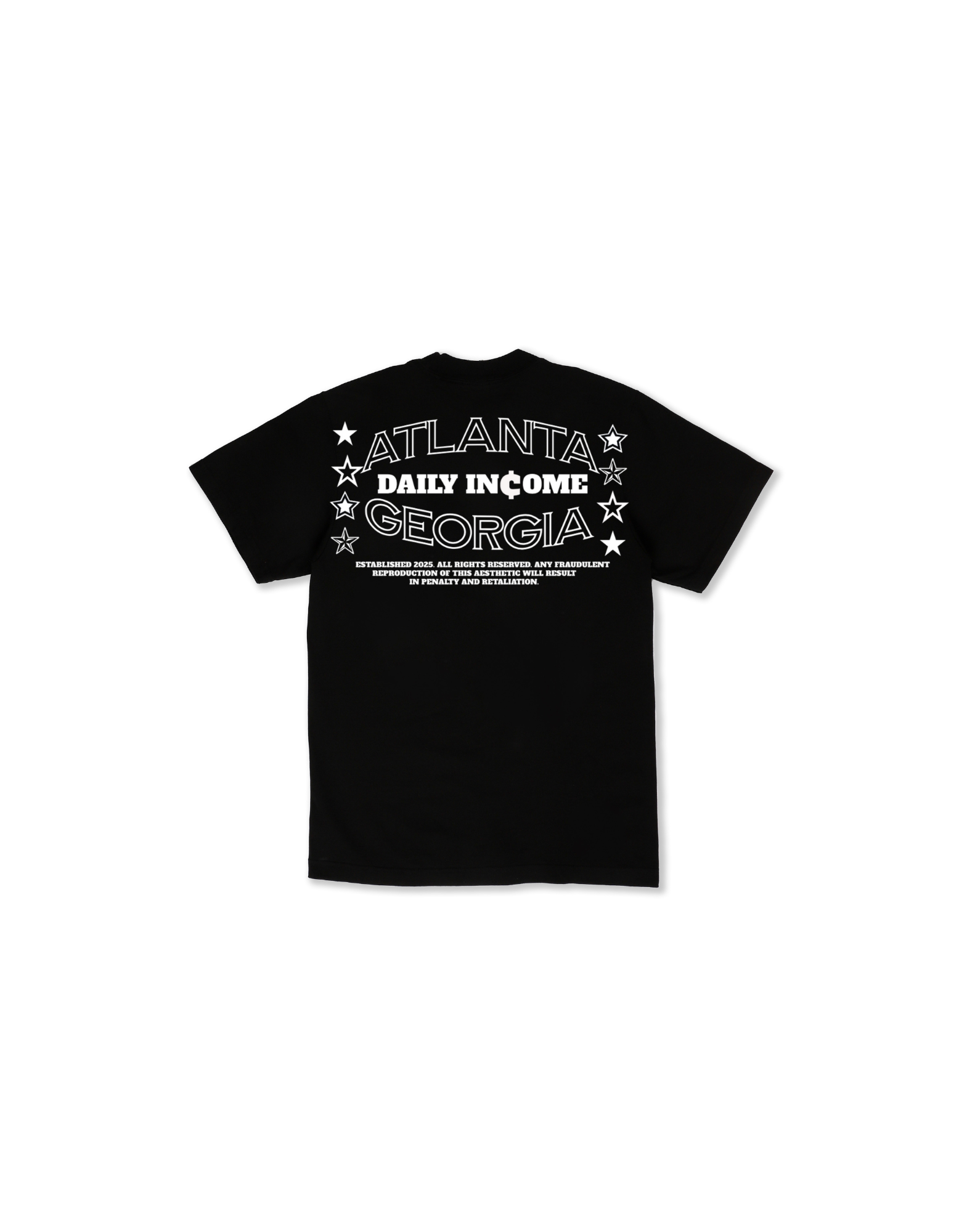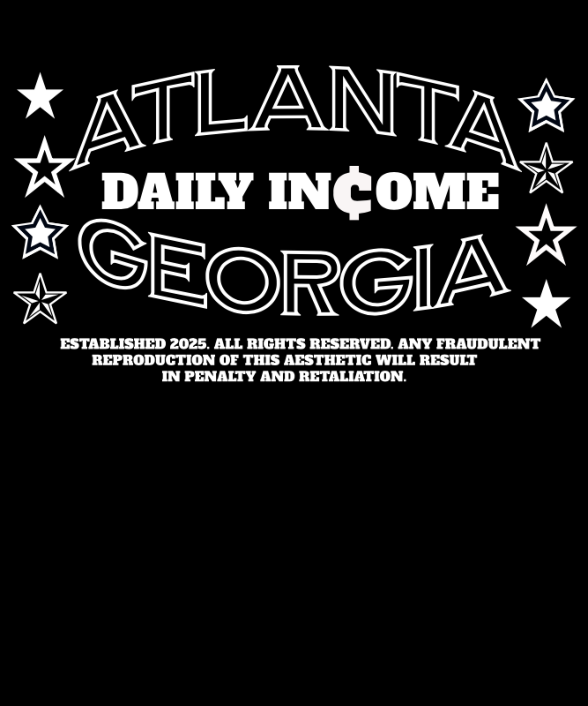 - Back: “Atlanta Daily Income Georgia” with star graphics and an exclusive statement design