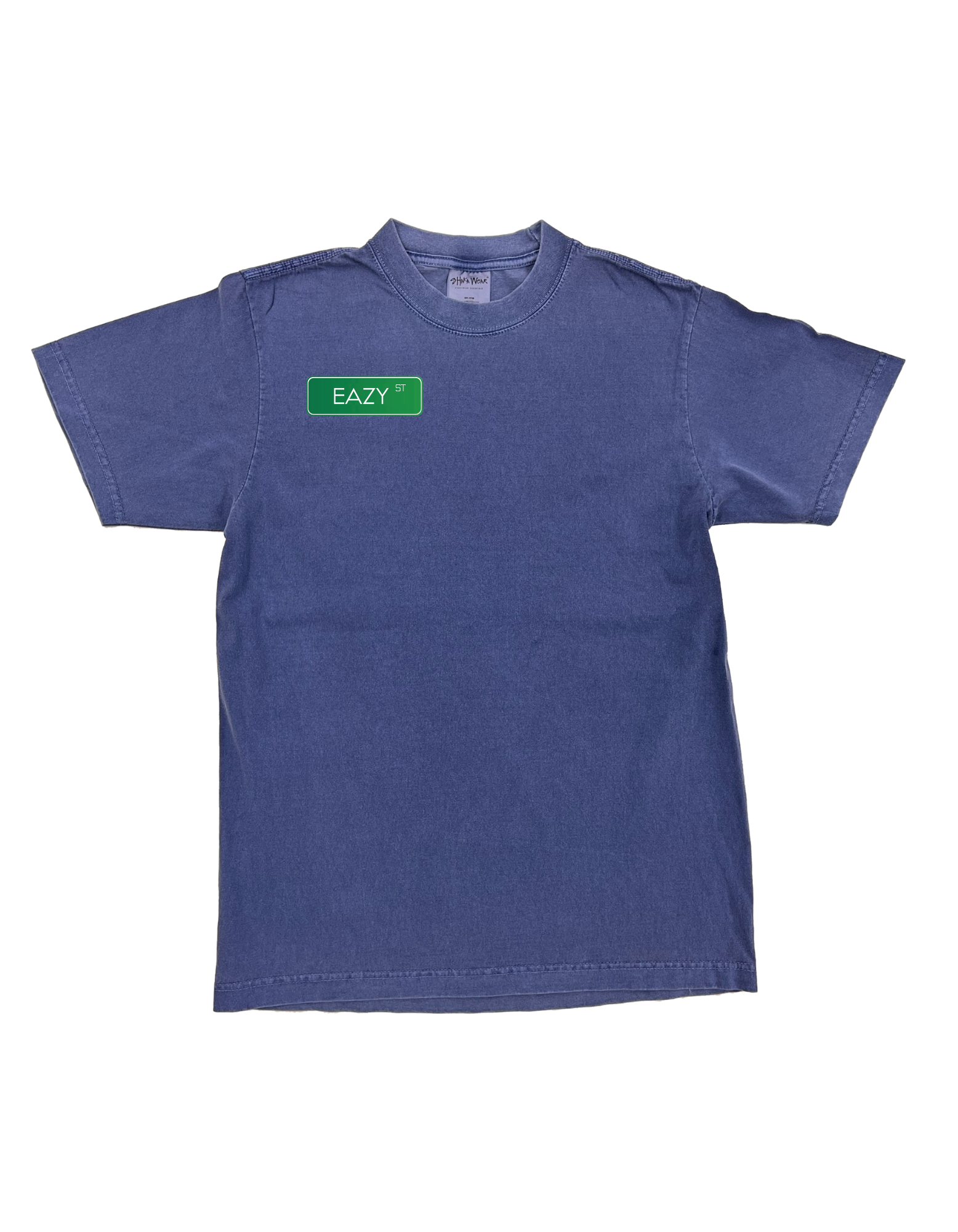 Built on heavyweight Shaka Wear quality, this washed blue tee features a subtle representation of Eazy Street. Finished with a clean green pocket-sized chest design on the right side.